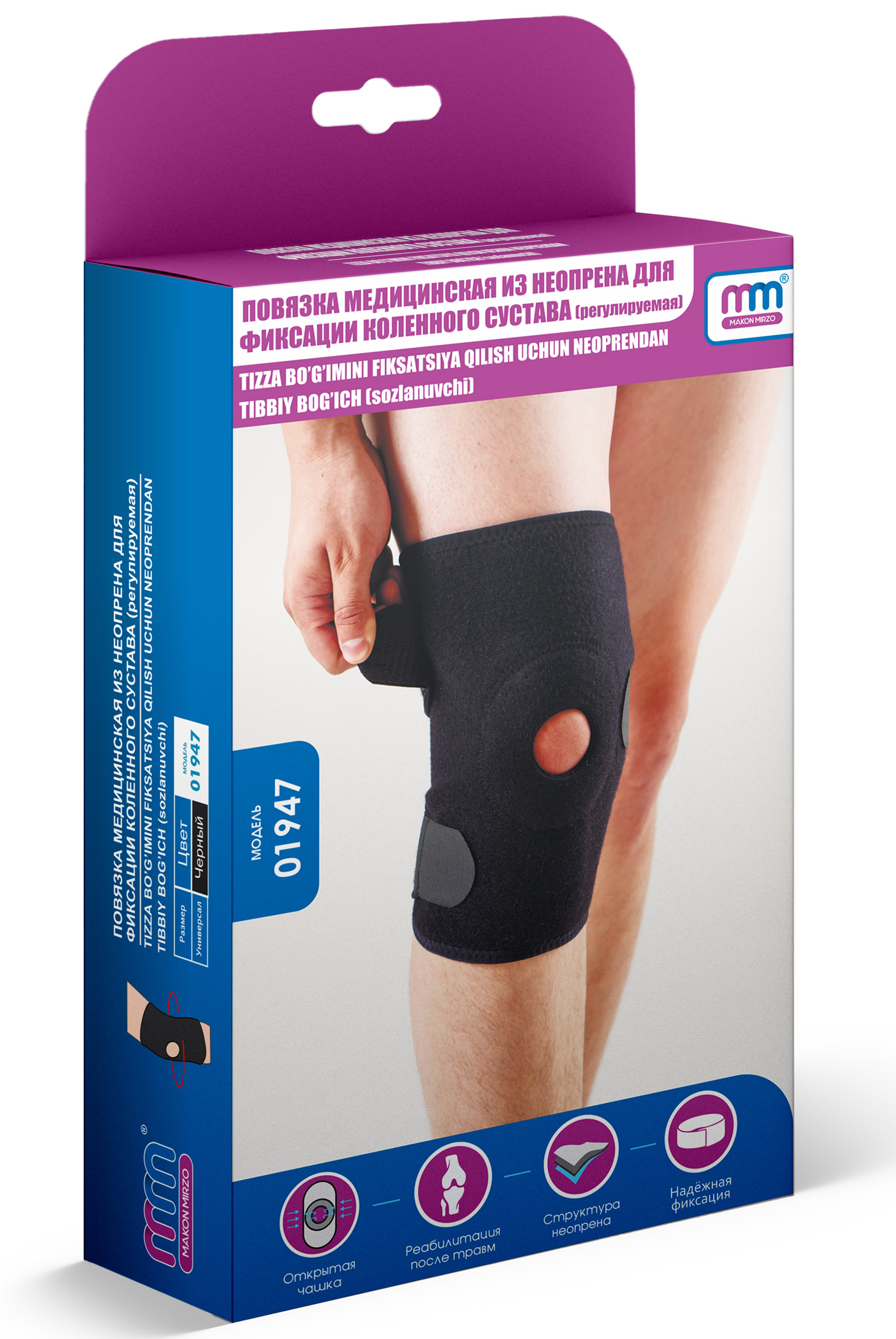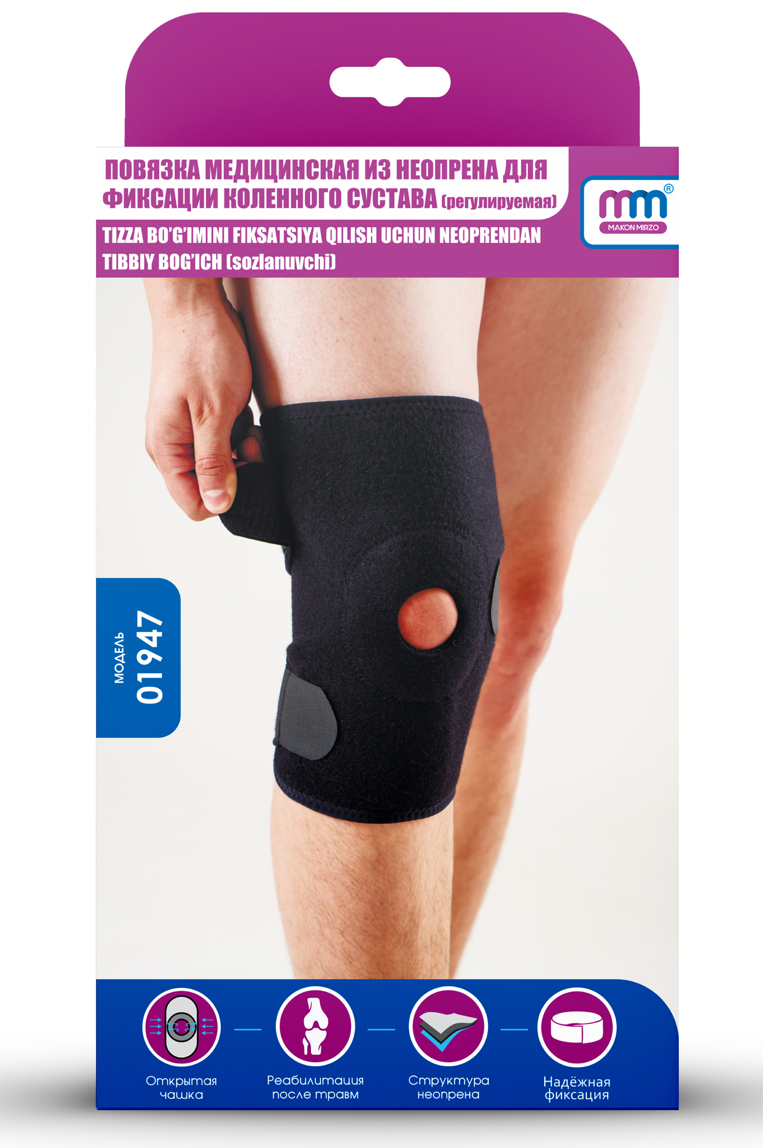 MakonmirzoПовязка медицинская из неопрена для фиксации коленного сустава с открытой чашечкой